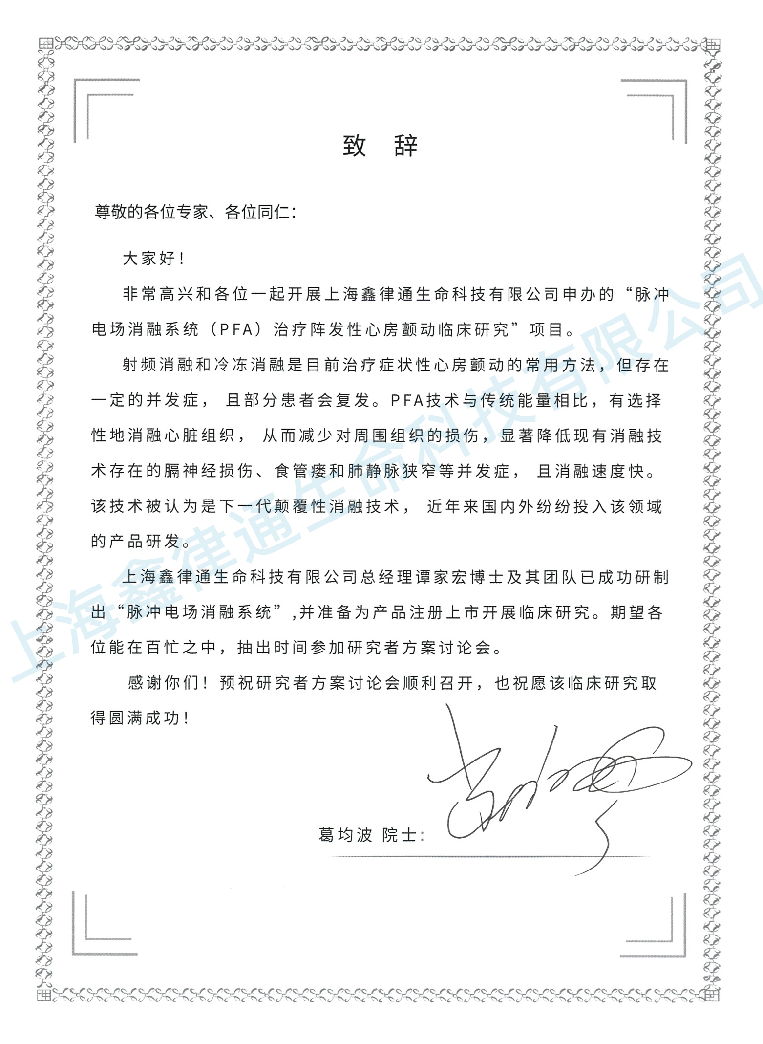 目前国内尚无治疗房颤的PFA产品上市,本次会议的顺利召开,为该临床研究项目的实施和开展奠定了坚实的基础,同时也让各参与方对本项目研究成果充满了信心和期待,公司将在各参与方的支持配合下,加速推进临床研究,助力PFA产品早日上市,造福更多房颤患者。